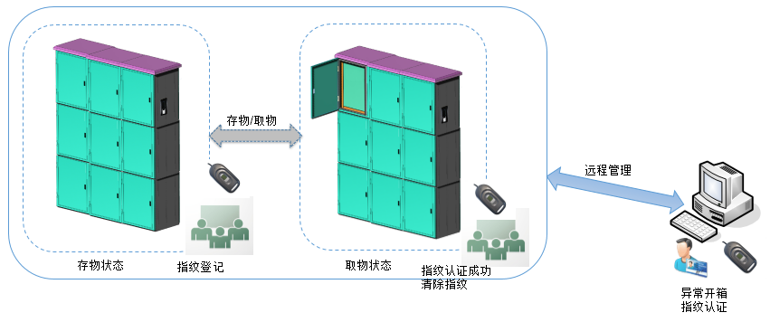 纹宁信息结合用户寄存需求,设计了一套专用于涉及个人物品寄存的指纹身份识别智能管理方案。